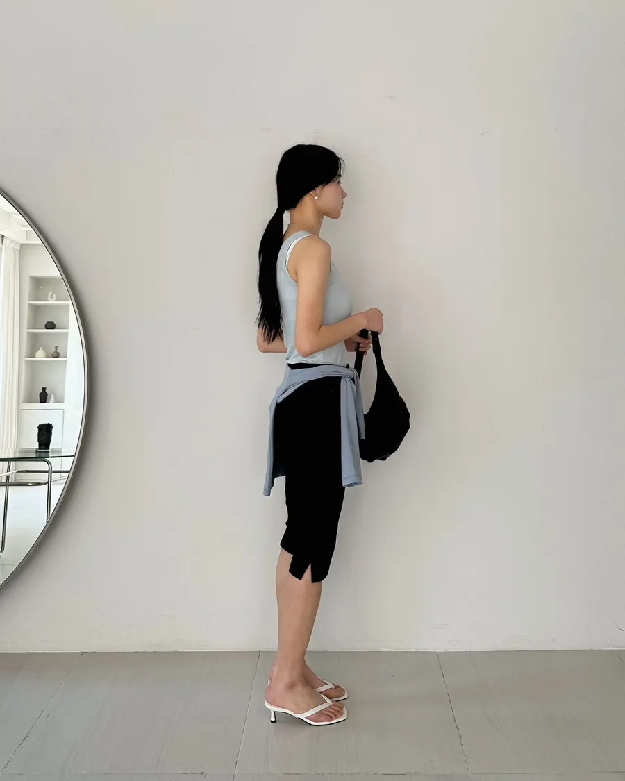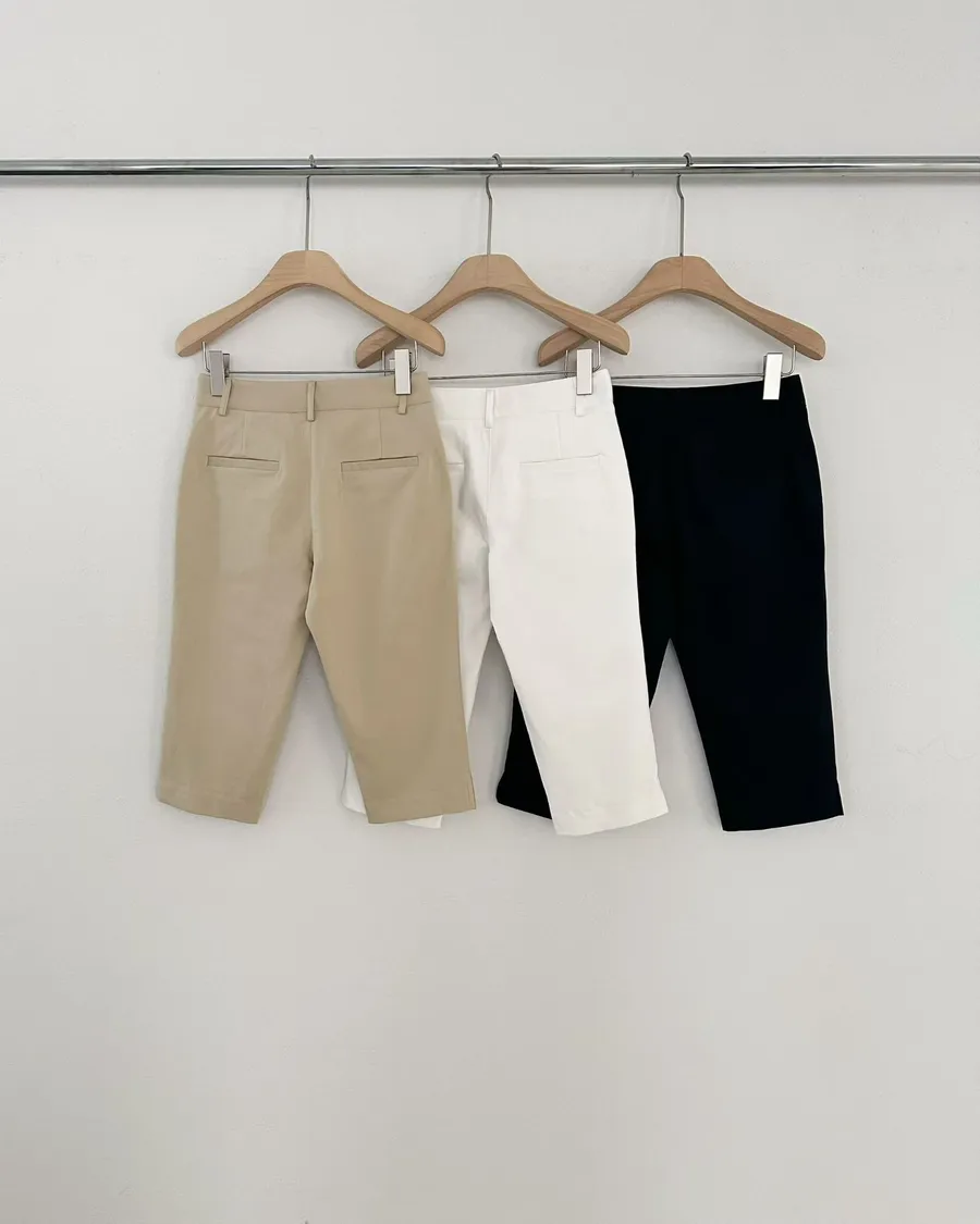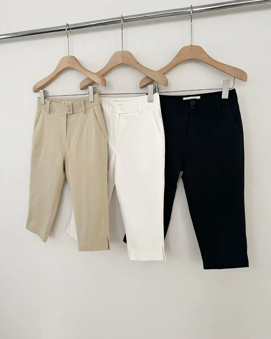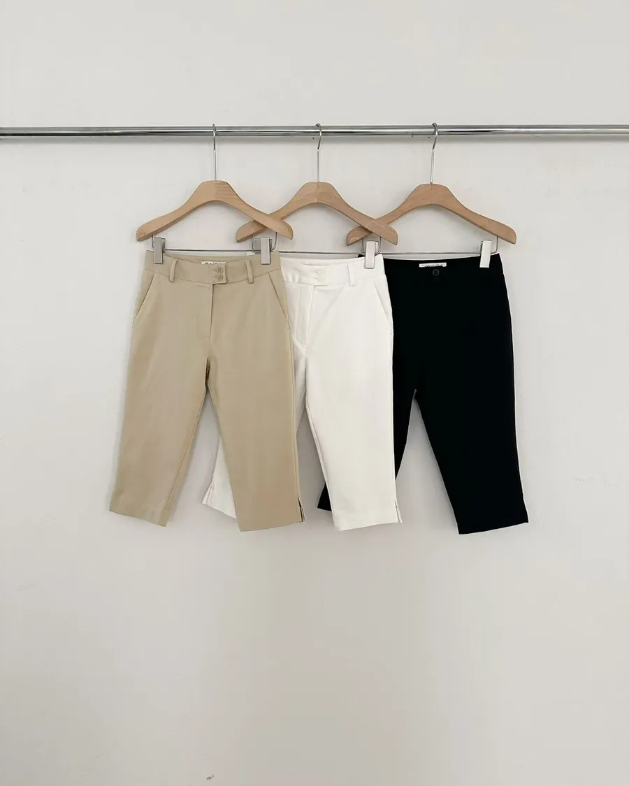 正韓 挺版顯瘦褲腳小開岔七分褲