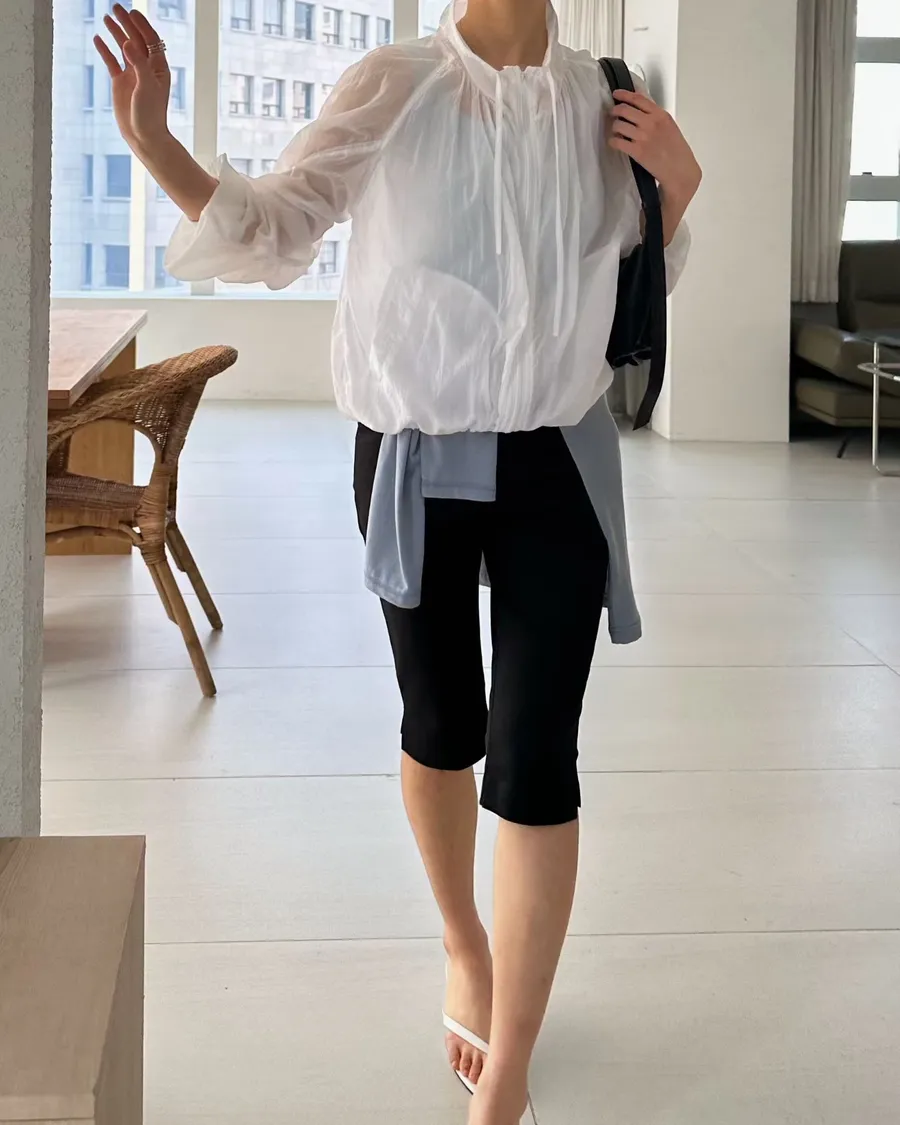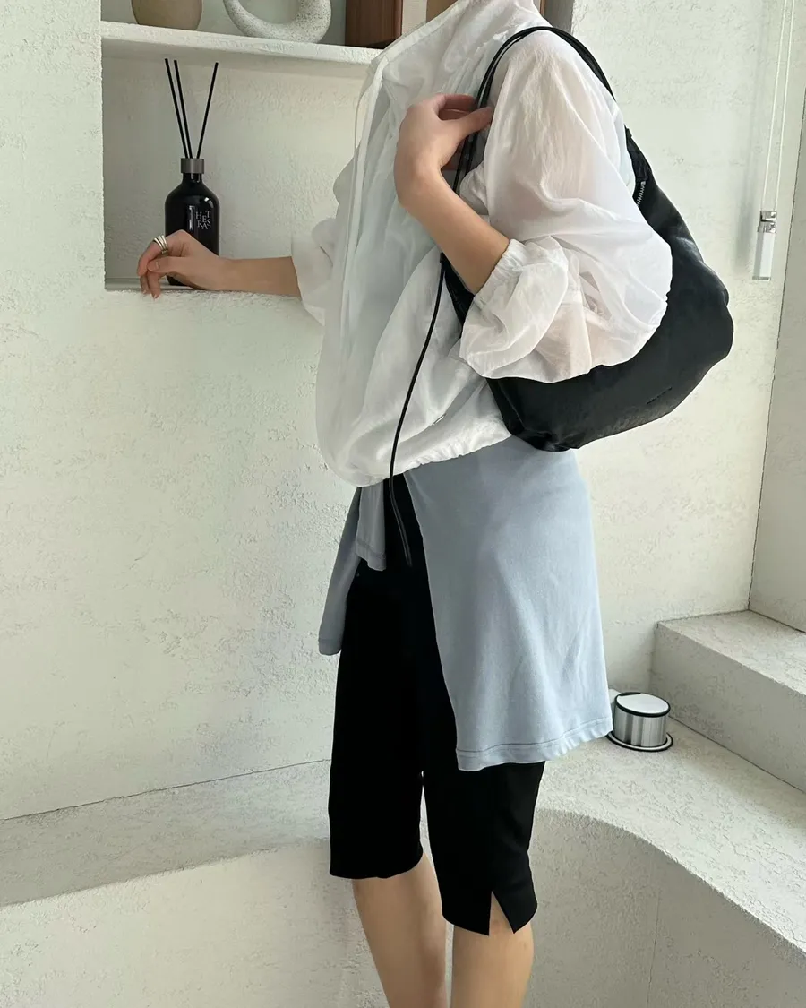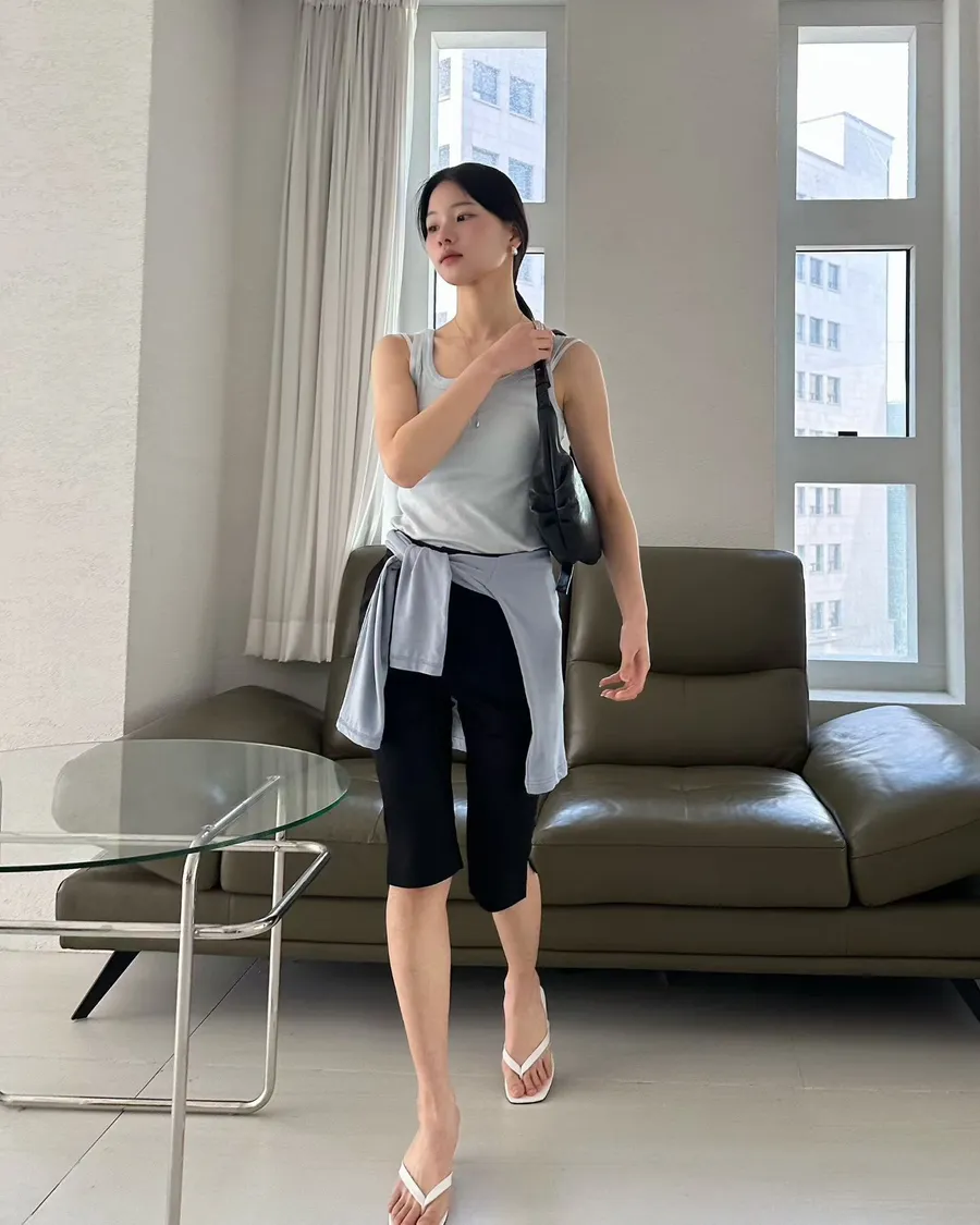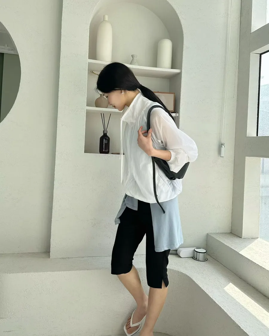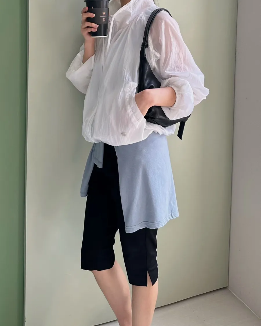 正韓 挺版顯瘦褲腳小開岔七分褲