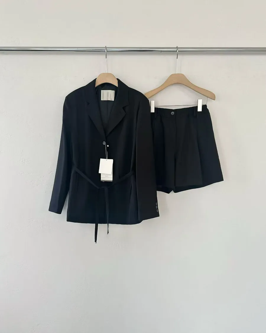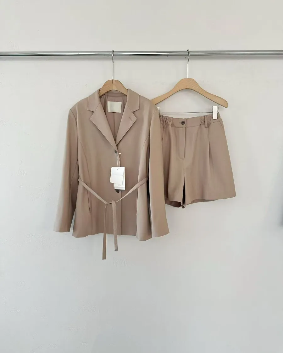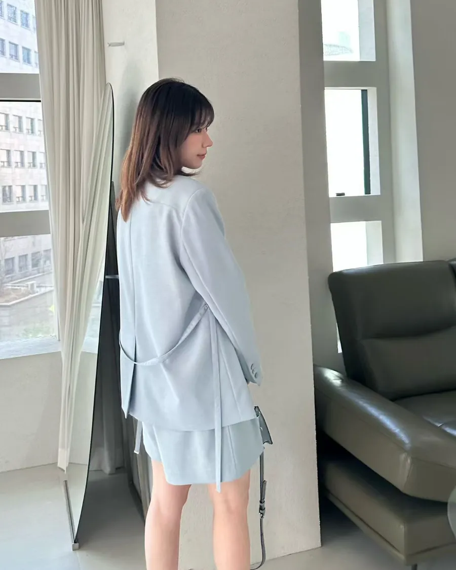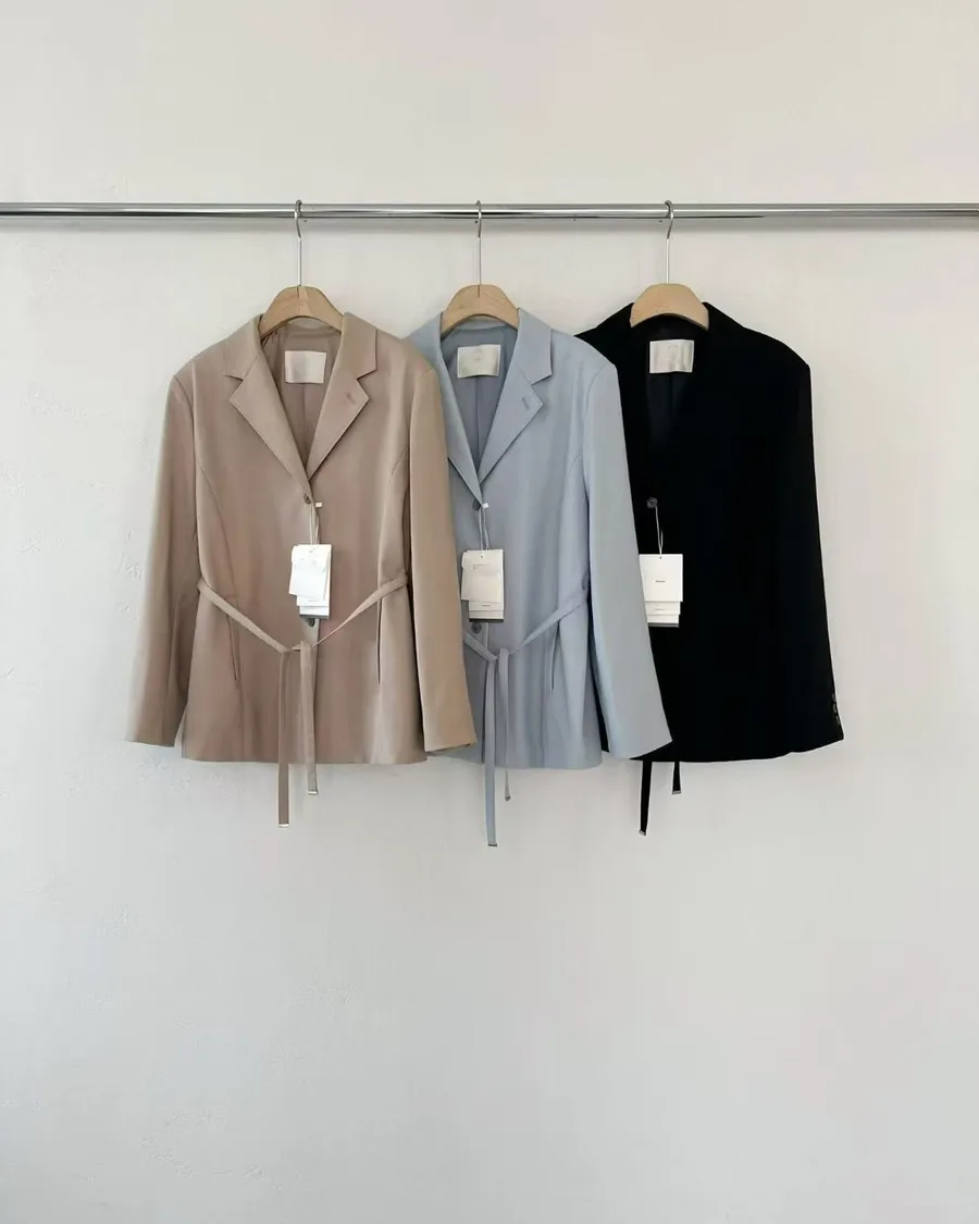 正韓 腰身口袋優質西裝外套(附綁帶)