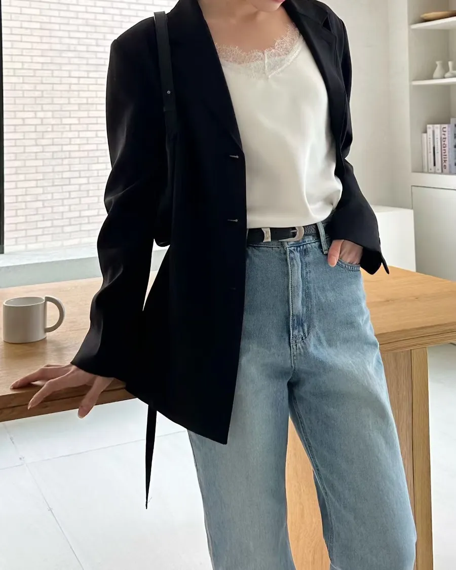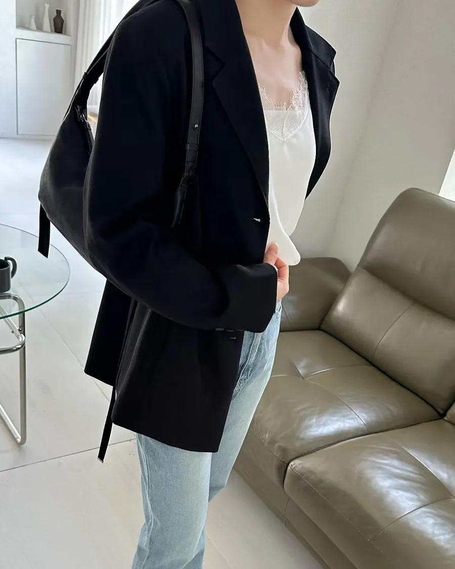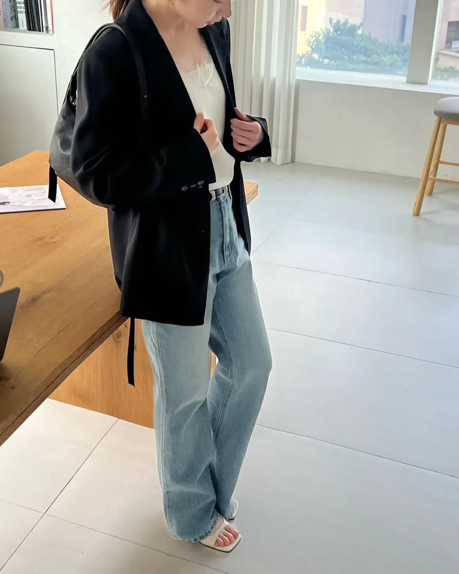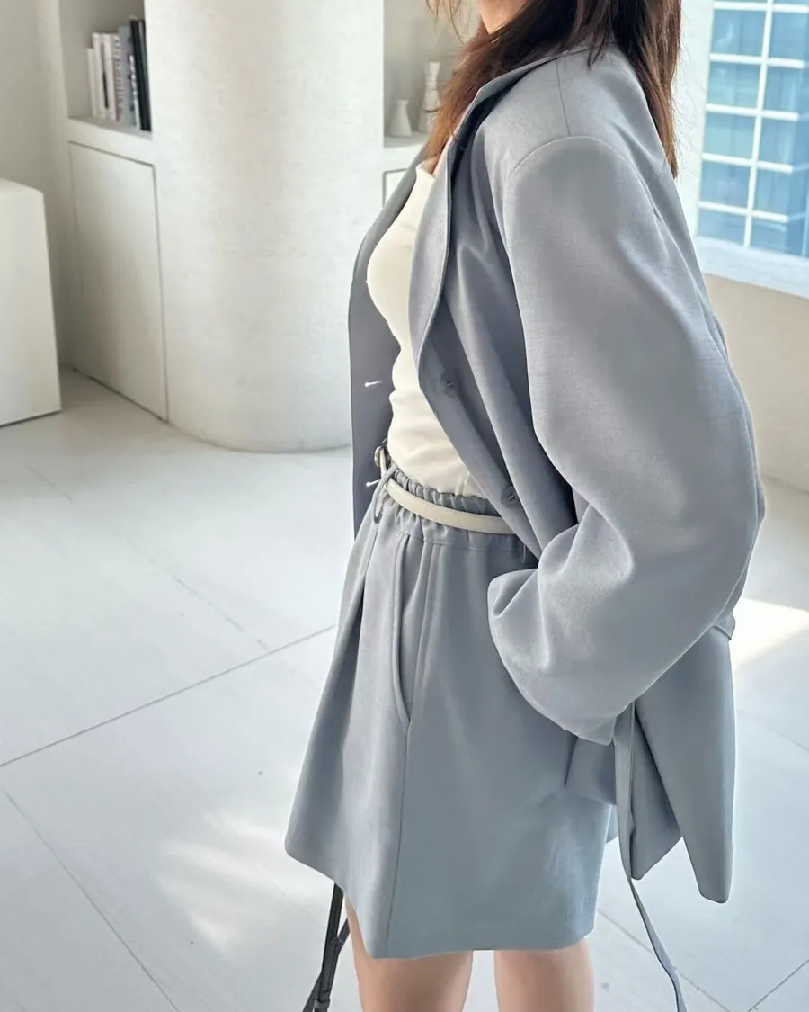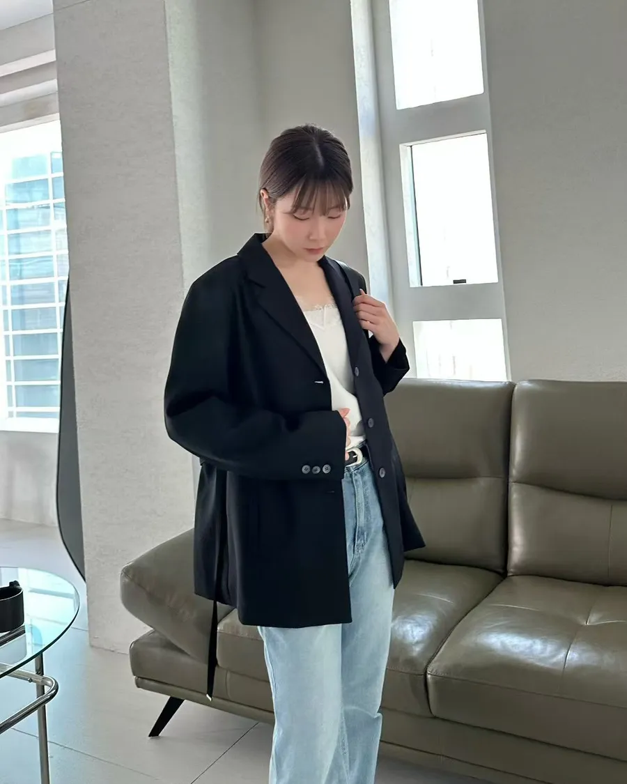 正韓 腰身口袋優質西裝外套(附綁帶)