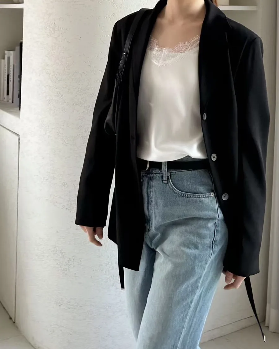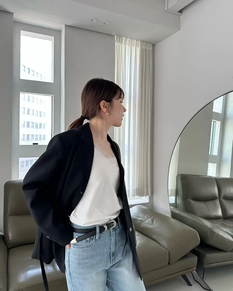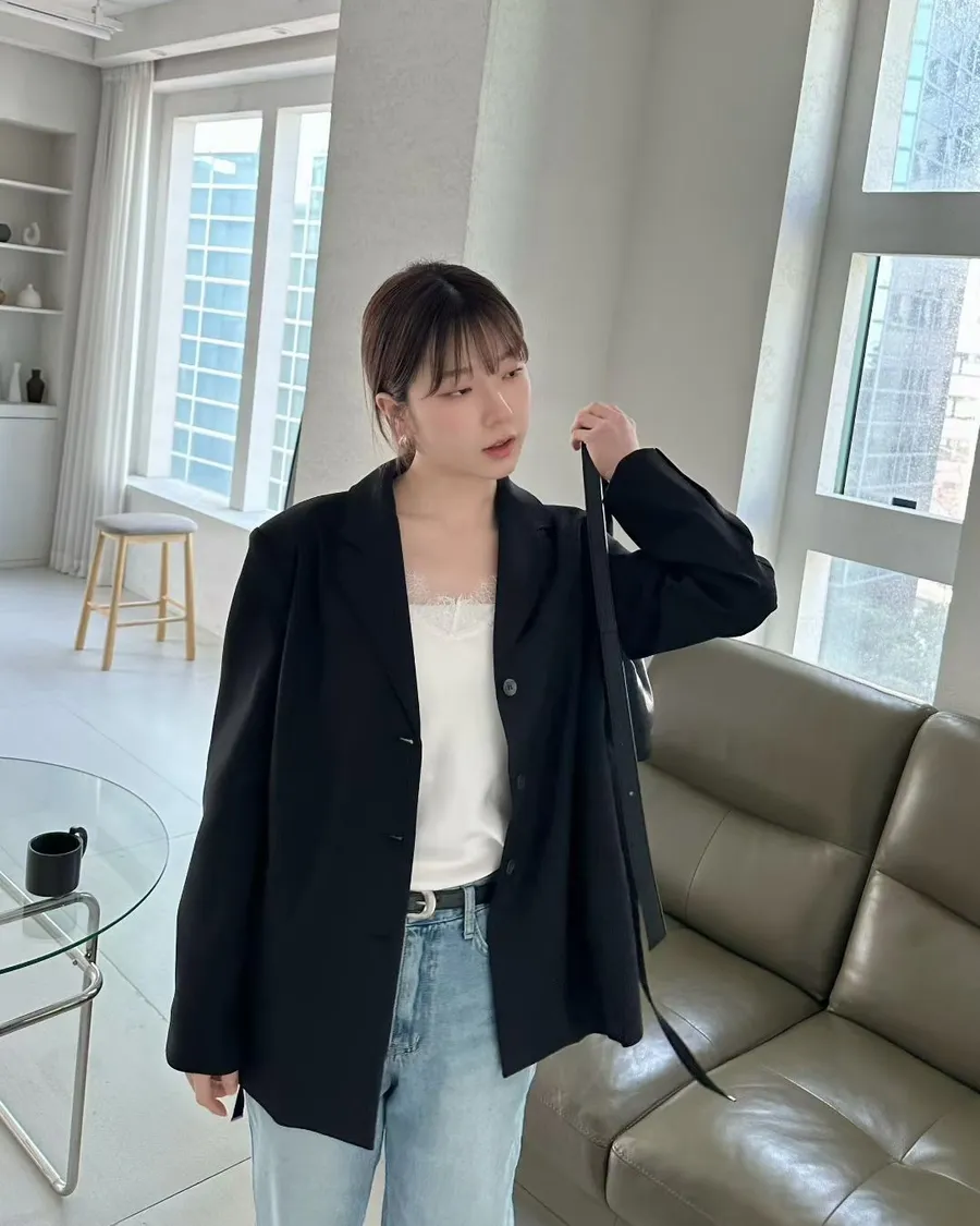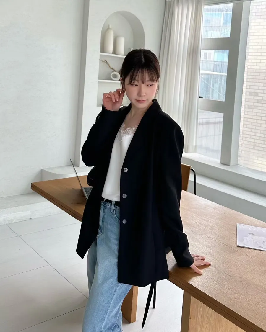 正韓 腰身口袋優質西裝外套(附綁帶)