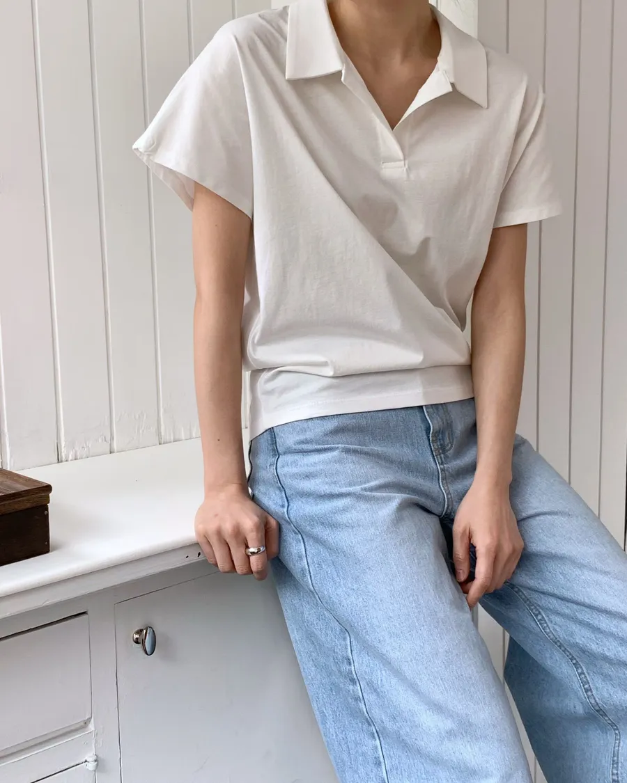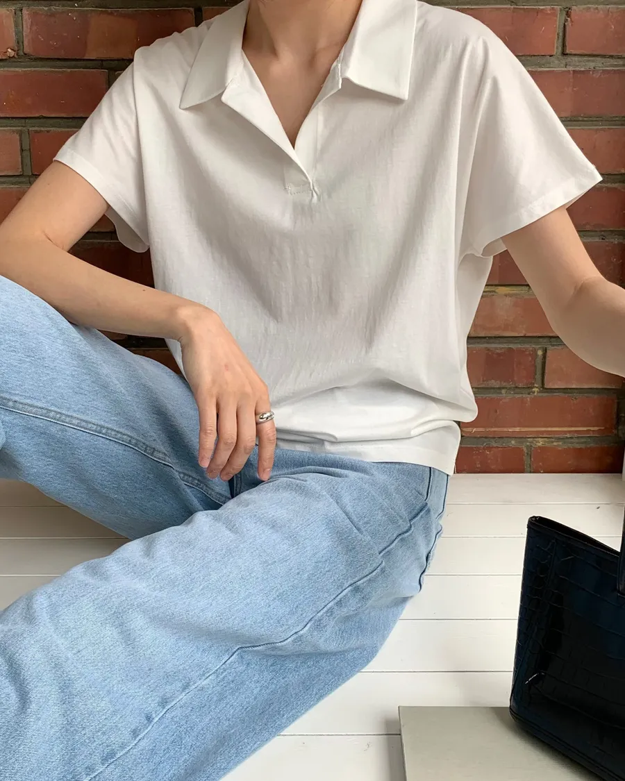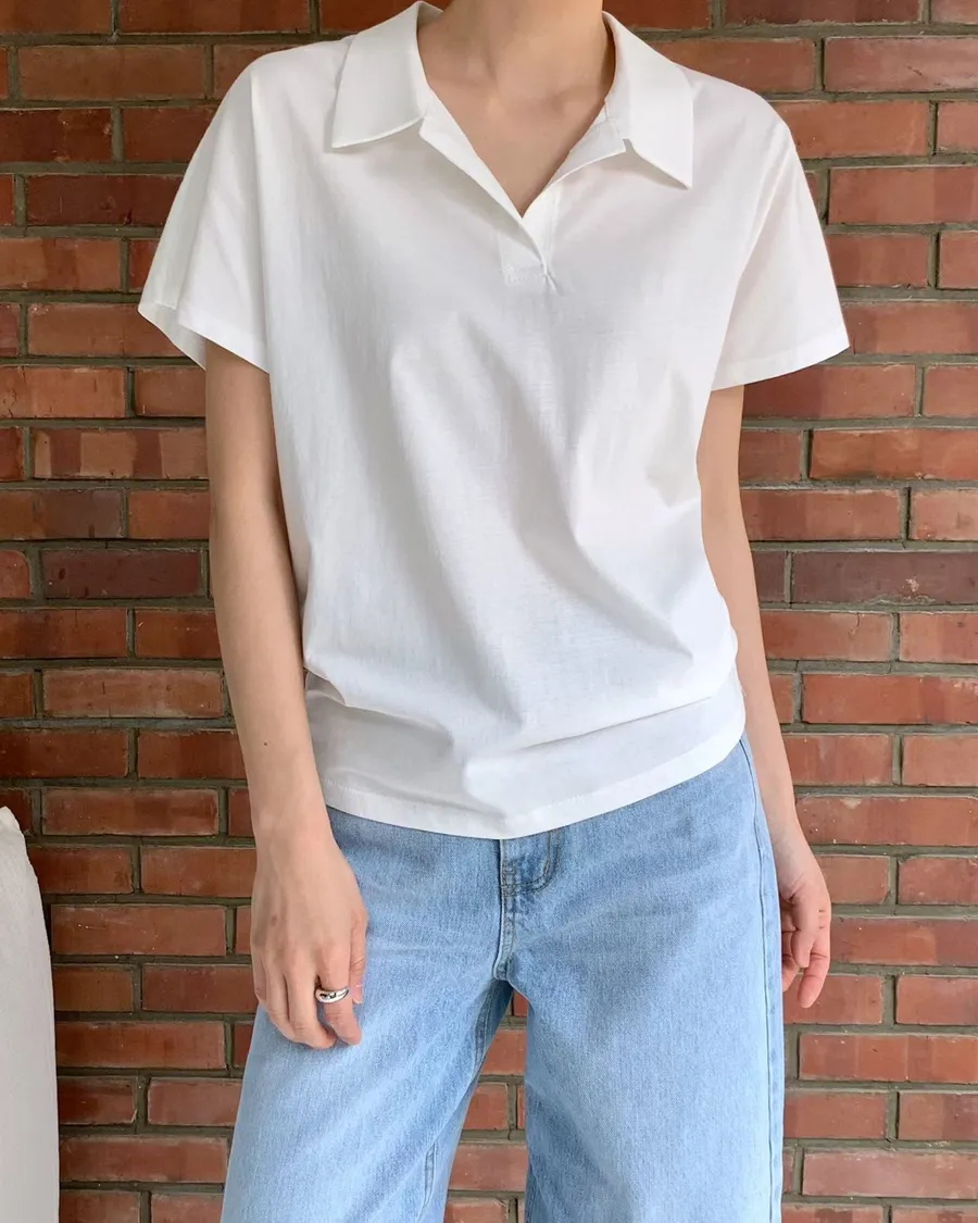正韓 翻領簡約風品味舒適棉質上衣