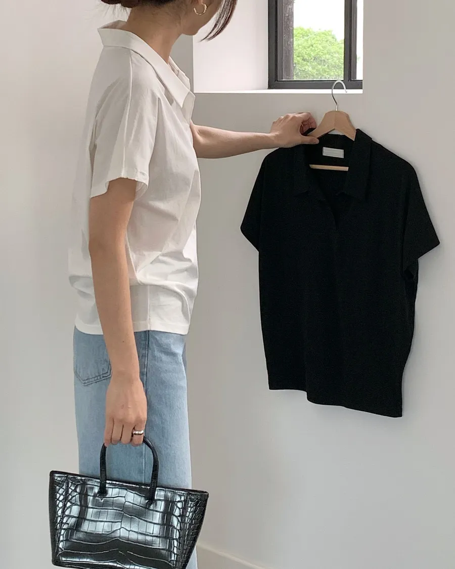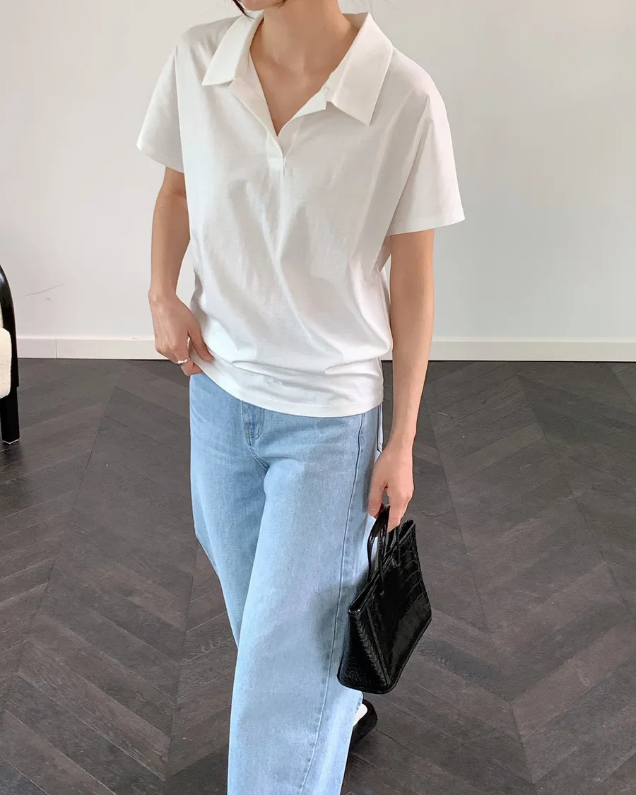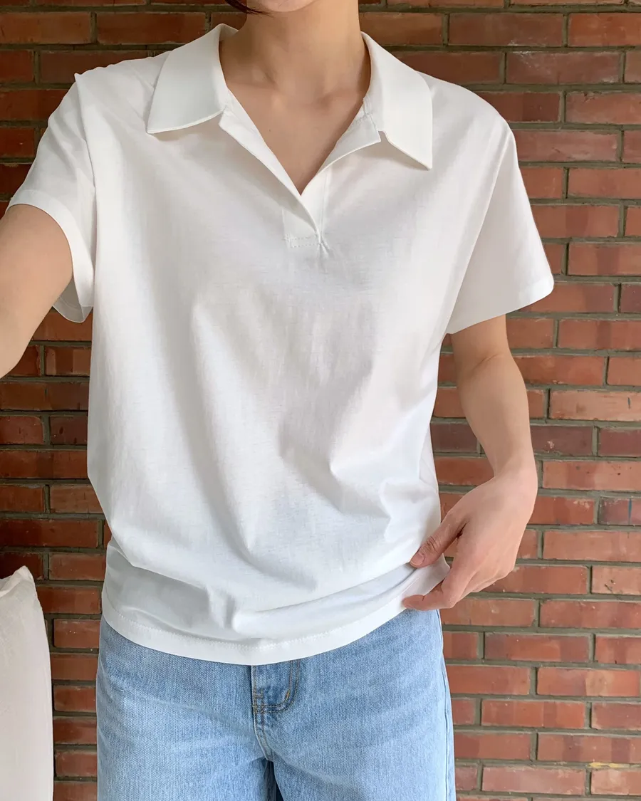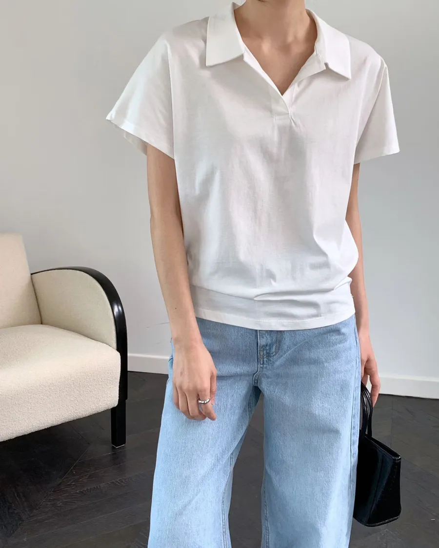 正韓 翻領簡約風品味舒適棉質上衣