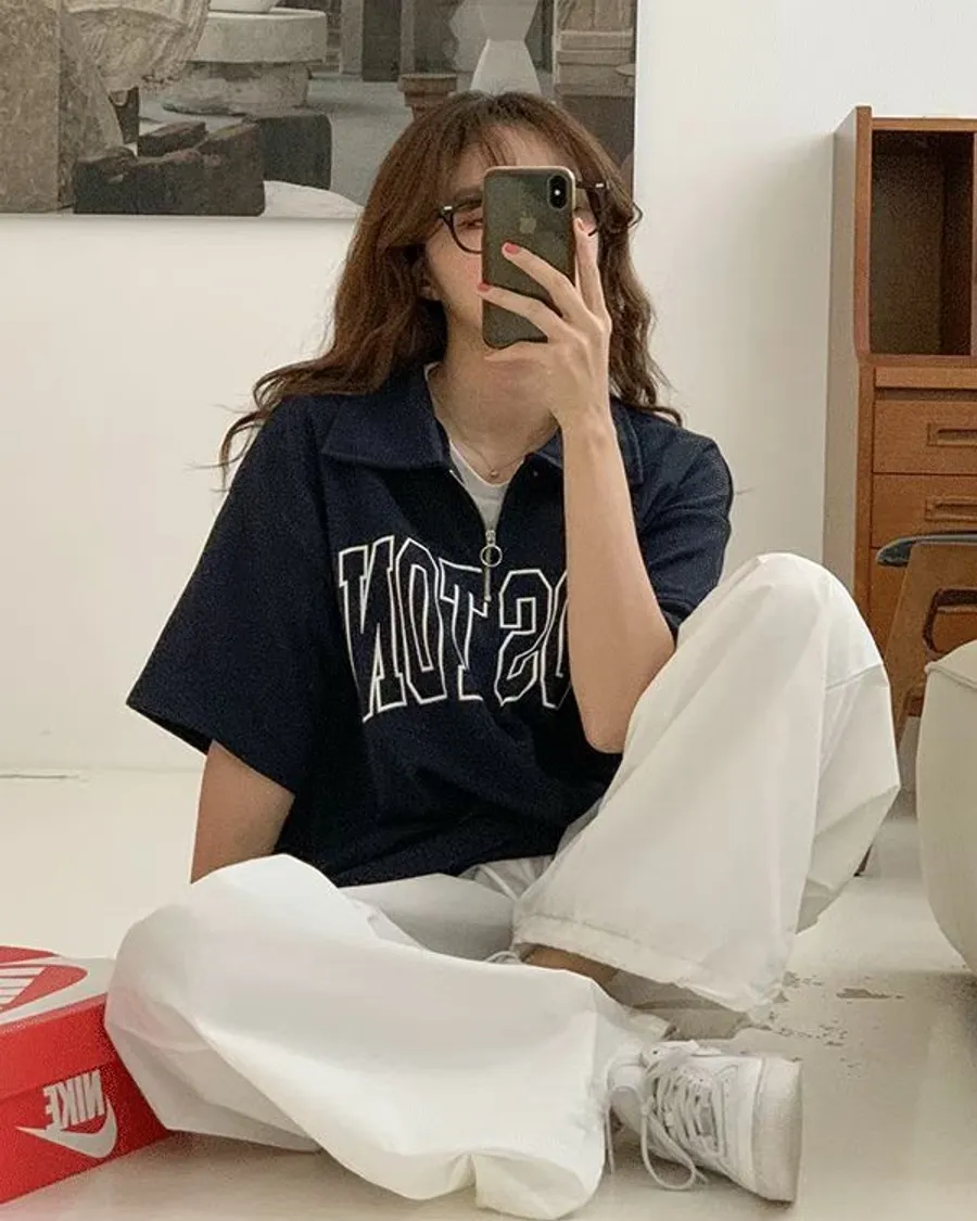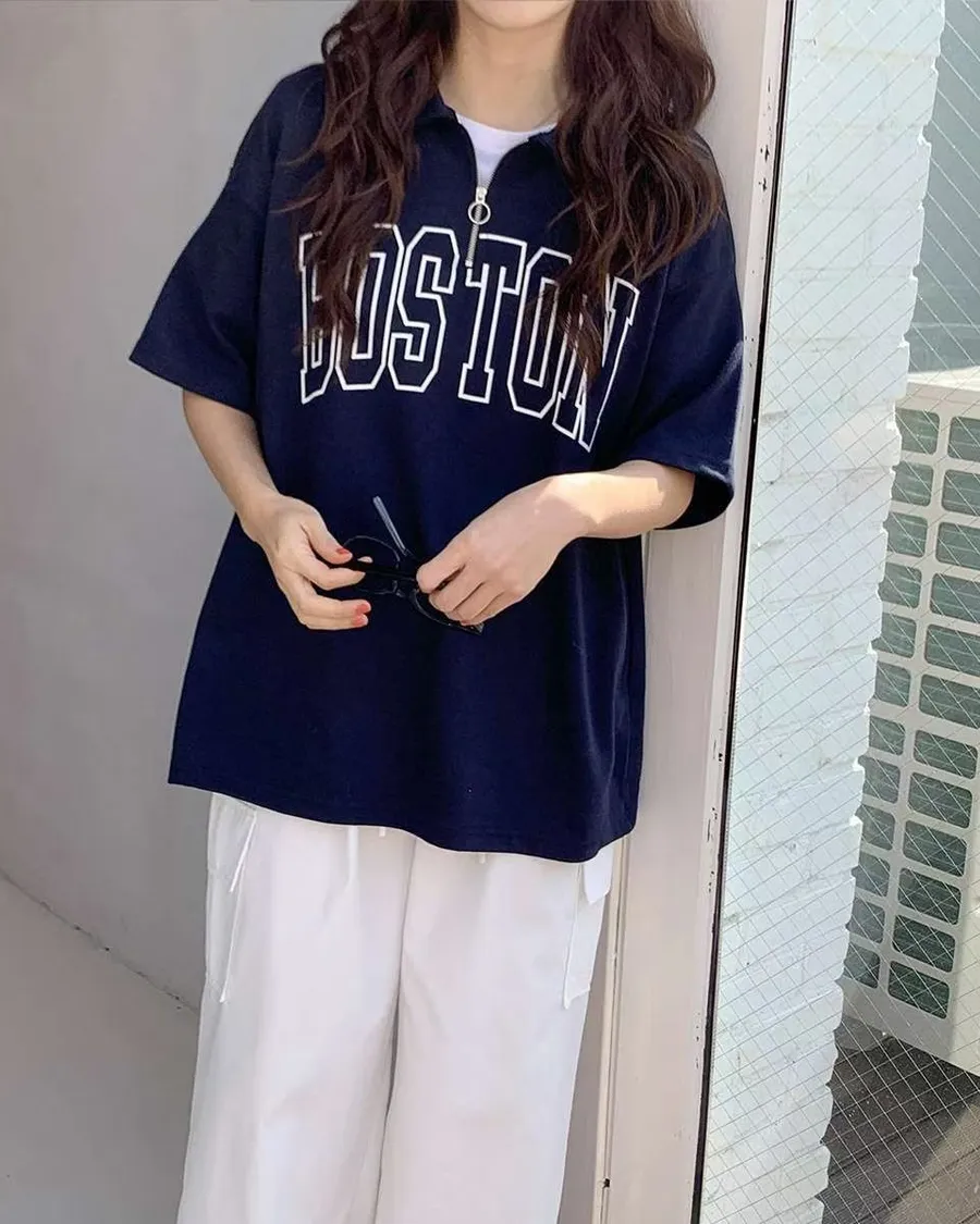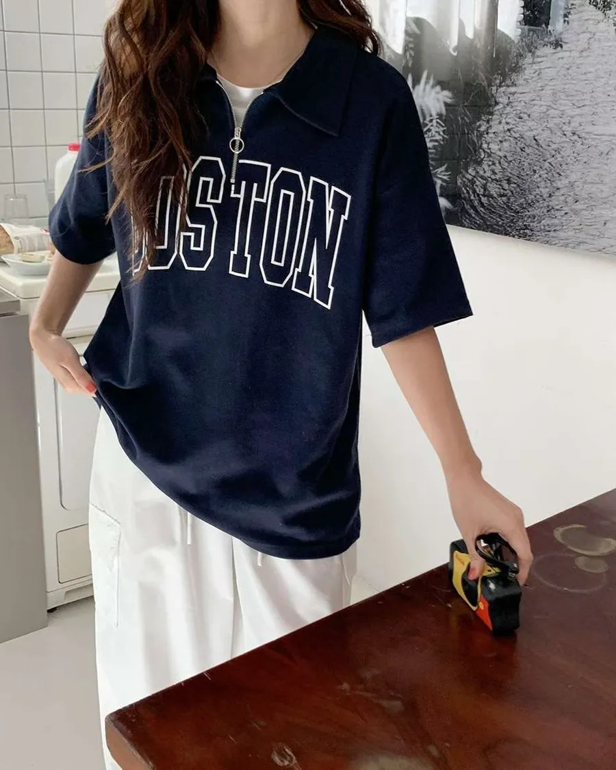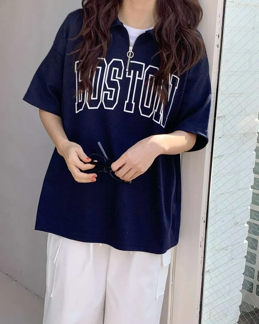 正韓 BOSTON波士頓拉鍊開領上衣