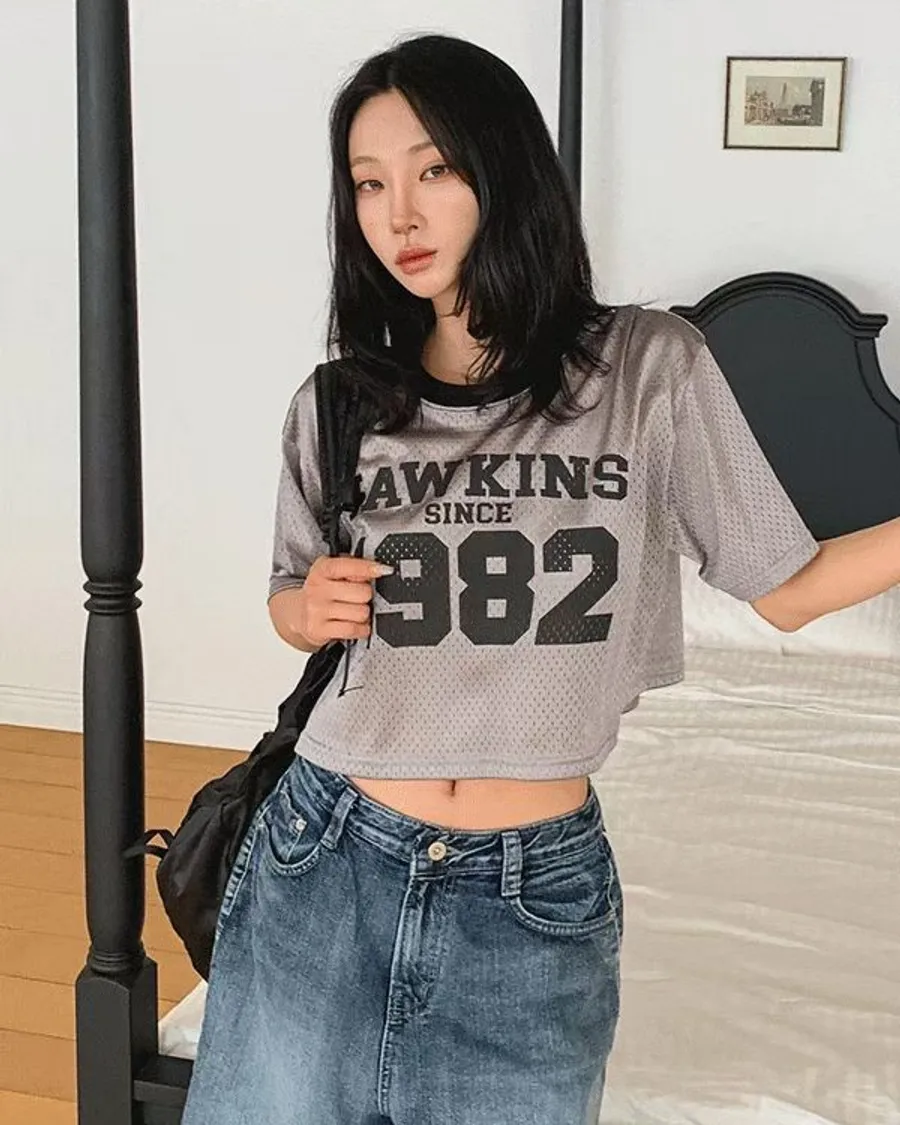 正韓 1982網眼透氣涼爽短版上衣