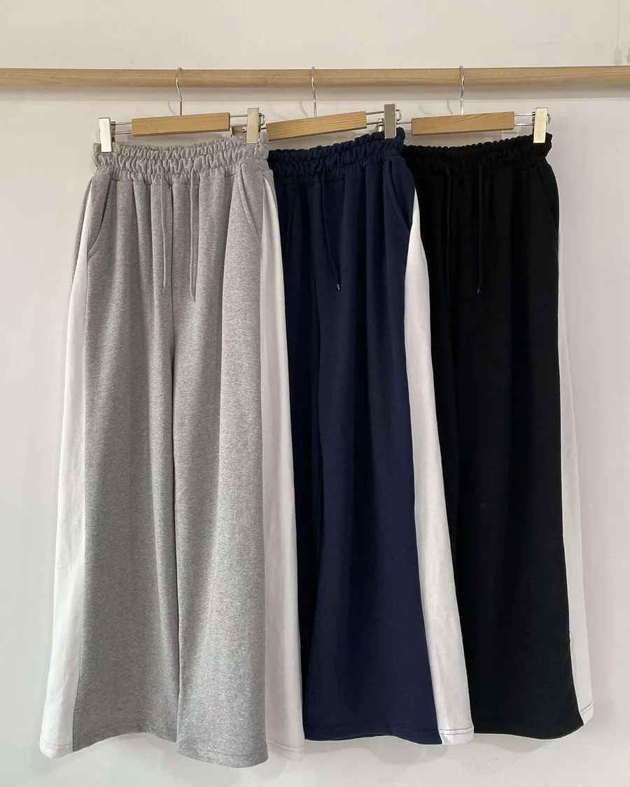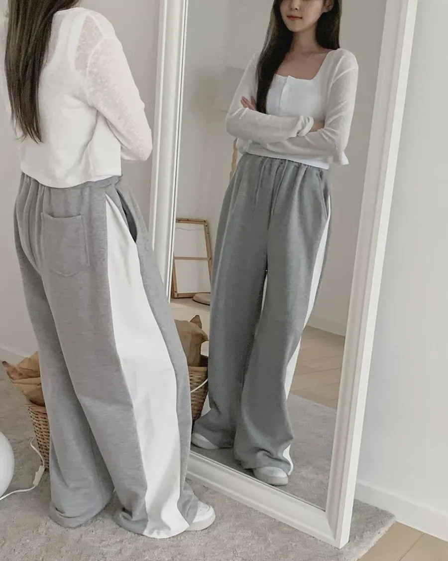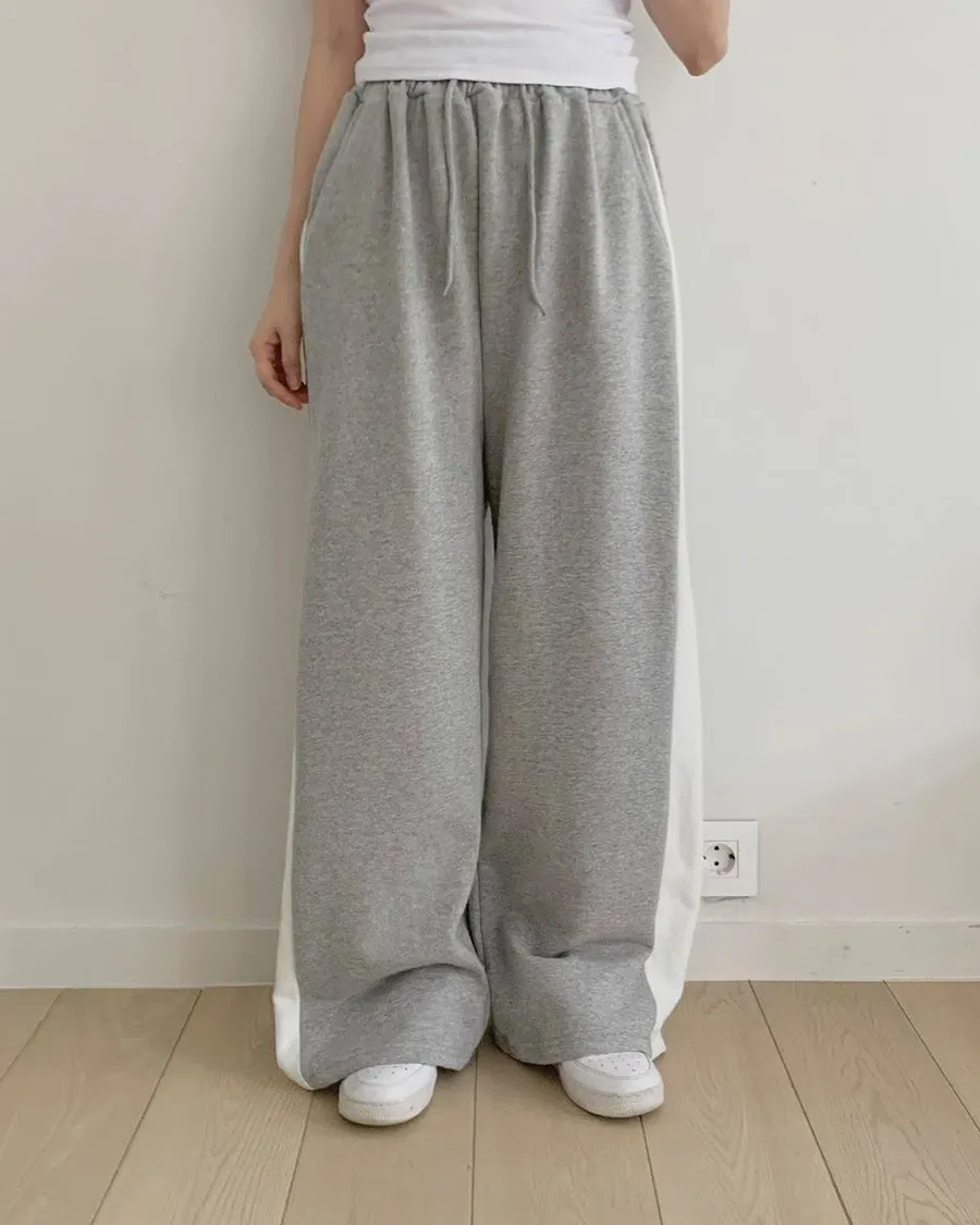 正韓 側開叉拚色時尚舒適休閒棉褲