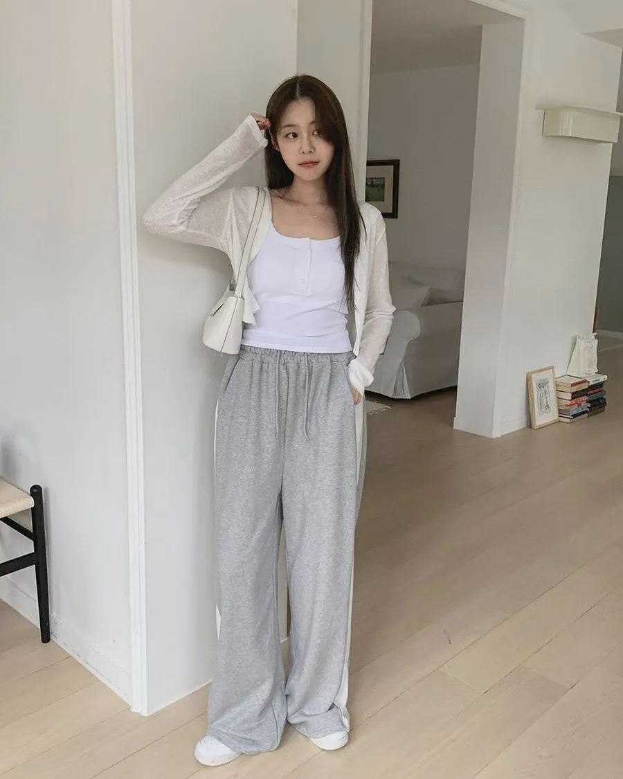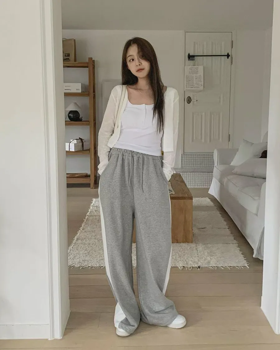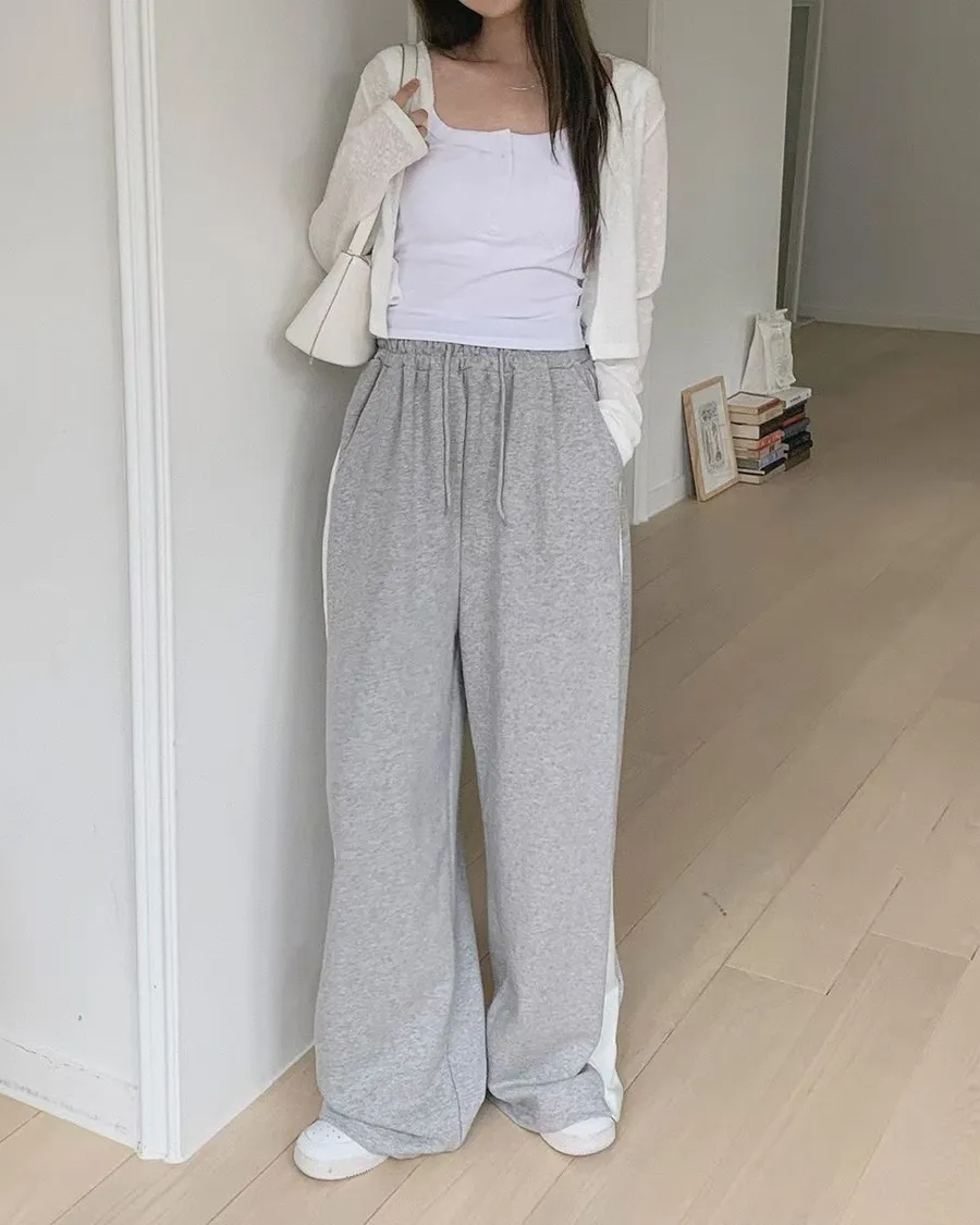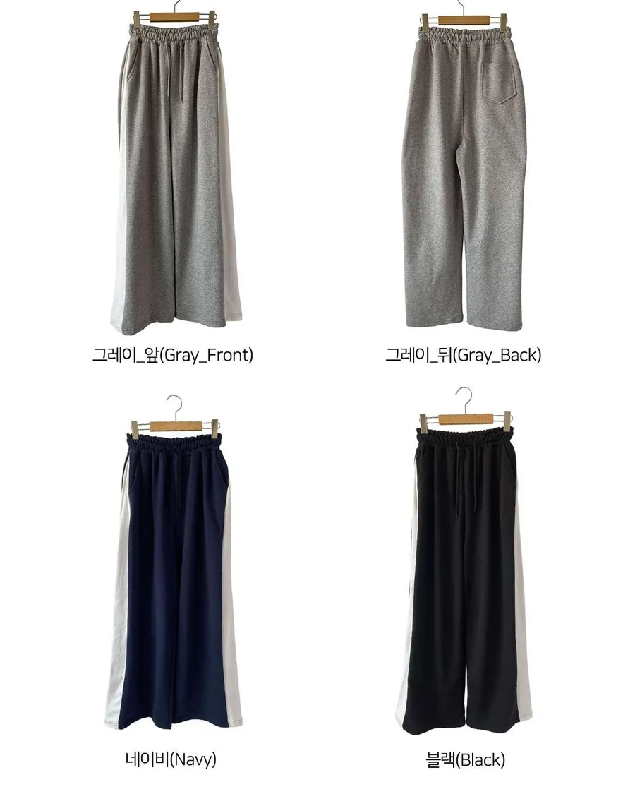正韓 側開叉拚色時尚舒適休閒棉褲